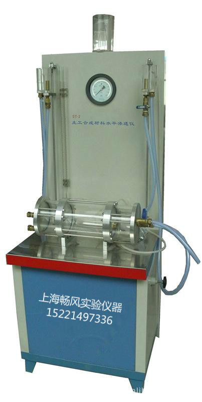 排水板通水儀的工作容器由φ130、厚2mm的不銹鋼圓筒與φ200,厚l0mm的法蘭盤焊接而成,有效長度為40cm。法蘭盤的中間開橢圓孔,孔口尺寸為120mm×15mm,土工布排水板水平通水量測試儀生產廠家質優與孔口底邊齊平設置帶孔眼的不銹鋼承托盤。型排水板通水儀工作容器上布置加壓表、排水口(帶閥門).加壓口(帶控制閥)、送水口(帶閥門)、溢流口(帶閥門)。