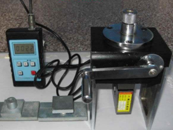 基本結構:順時針搖動手柄時,與其同軸的蝸桿隨之轉動,帶動絲桿使小活塞產生位移,將泵體內液壓油推向工作油缸,大活塞位移通過萬向結帶動連接螺母及標準塊,對被檢測的物體施加向上拉力,同時液壓油對油壓傳感器產生工作壓力,傳感器把油壓信號變為電信號,電子電路對該信號進行處理。隨著手柄的轉動油壓增高,直至標準塊被拉脫落。