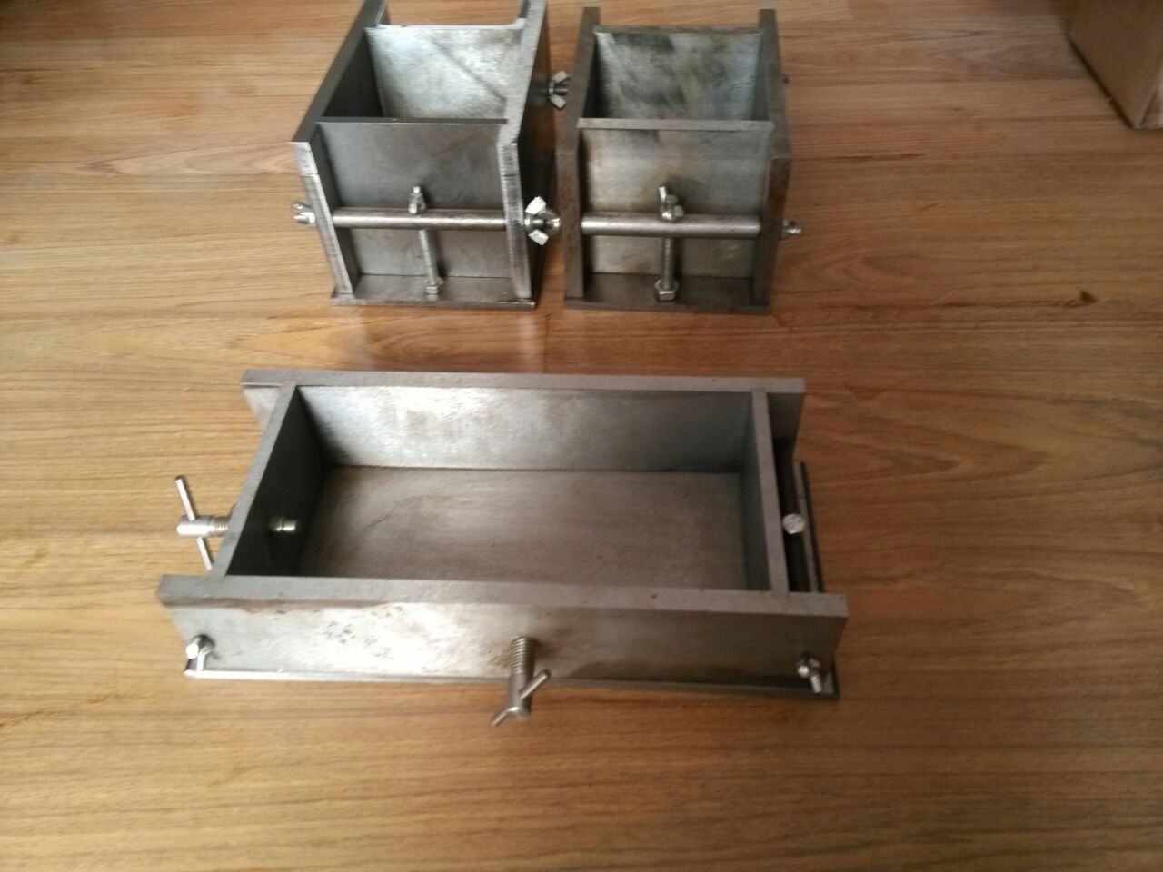 砌墻磚一次成型制樣模具,二次成型制樣模具一、簡介:本模具是依據GB/T2542-2012《砌墻磚試驗方法》抗壓強度試樣制備設備通用要求來制作的,分一次成型模具和二次成型模具兩種。二、試模:1、一次成型試模組裝后型腔尺寸為:長120mm±15mm(可調節);寬120mm;高120mm。2、二次成型試模組裝后型腔尺寸為:長240mm±15mm(可調節);寬120mm±10mm(可調節);高65mm。三、使用:1、一次成型試模組裝后,用潤滑油進行抹刷,然后把磚試樣放入試模中,在中間和兩邊插入插板以確定厚度,前后方向用膠皮密封,初步擰緊螺絲固定試樣,取出插板,