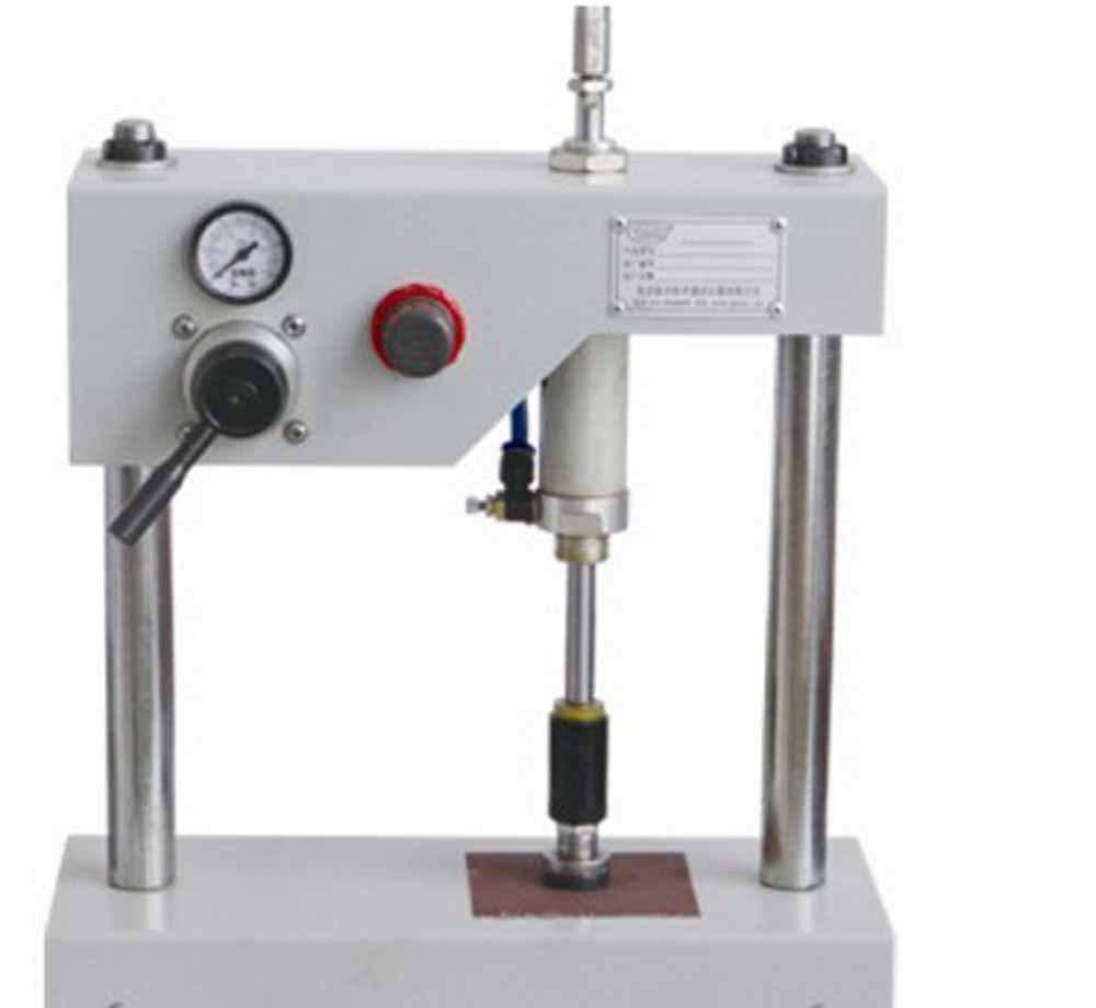 將氣動橡膠墊底座壓在試件上面,用自行車氣筒或空氣壓縮機向儀器加壓。